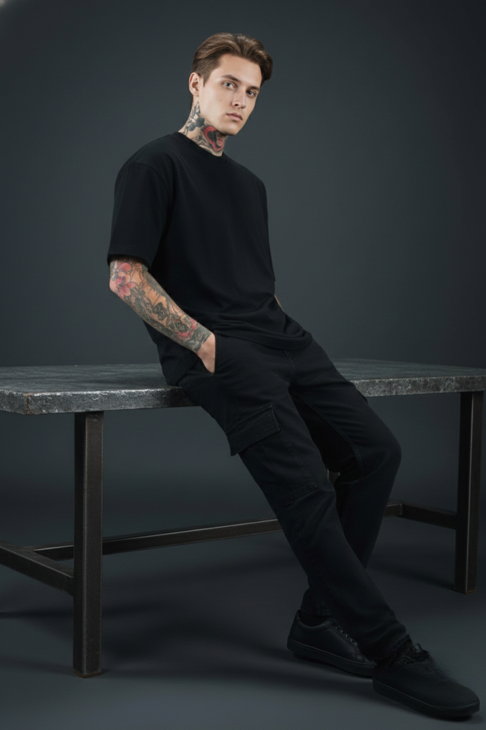 Black Solid Oversized T-Shirts