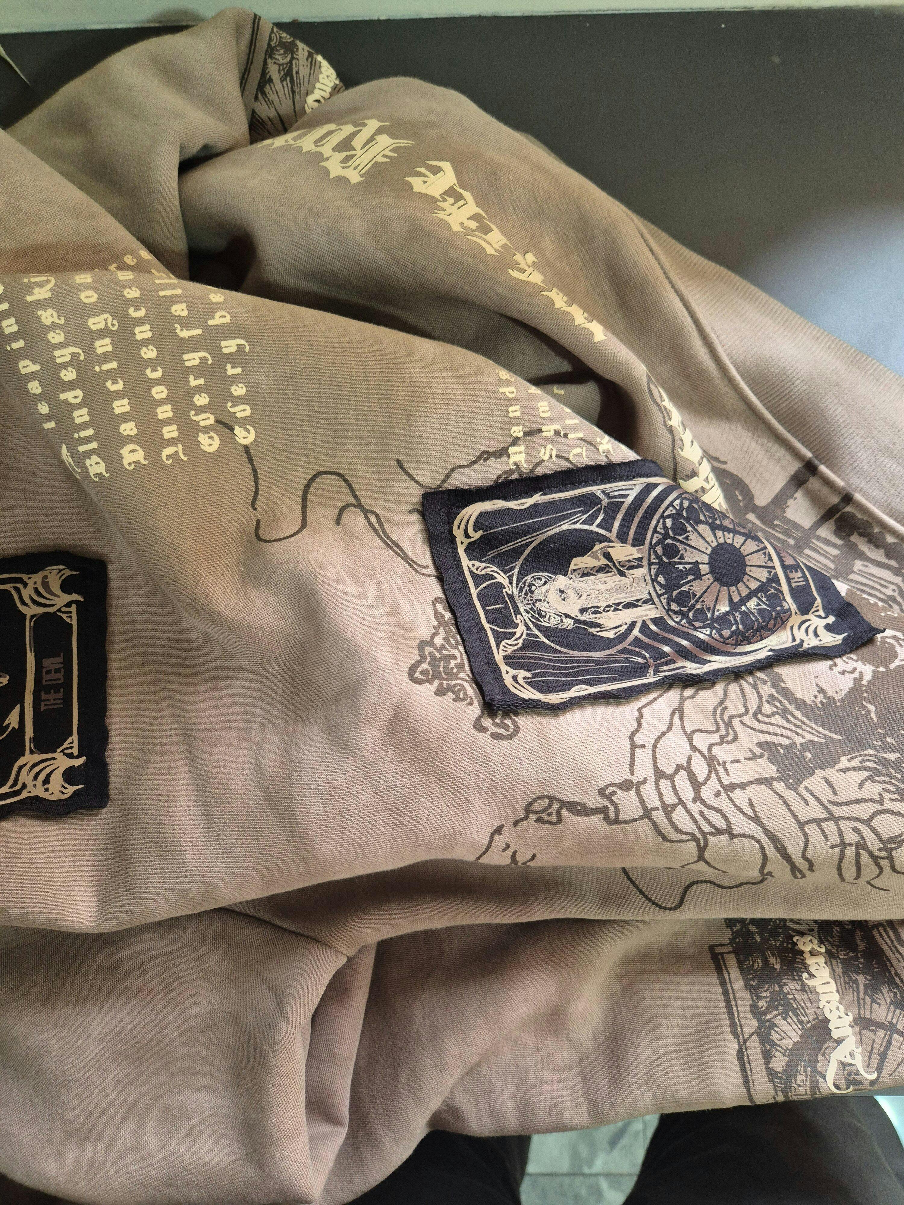Crafted in earthy tones with hand-detailed prints and gothic typography, Runestone bridges the gap between art and apparel. Designed for those who see meaning in the abstract and wear their truth in texture.